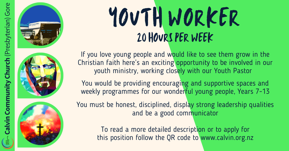 For a position description please email ken@calvin.org.nz